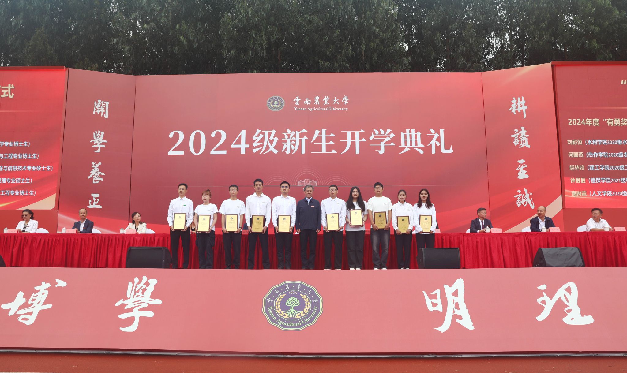 为了激励云农师生不断擦亮奋斗的底色,勇攀学术高峰,创造优异成绩,开学典礼上举行了“有勇”奖教金、奖学金颁奖仪式,对刘毅恒等10名学生、赵明等2名教师进行表彰,希望获奖的老师和同学谦虚谨慎、再接再厉,向朱院士学习,勇攀科学高峰、不懈奋斗,“把论文写在大地,把农民装在心里,争做懂农业爱农村爱农民的新农人。勉励各位新同学以他们为榜样,珍惜在校学习的宝贵时光,勤奋学习,争取登上这个光荣的领奖台。