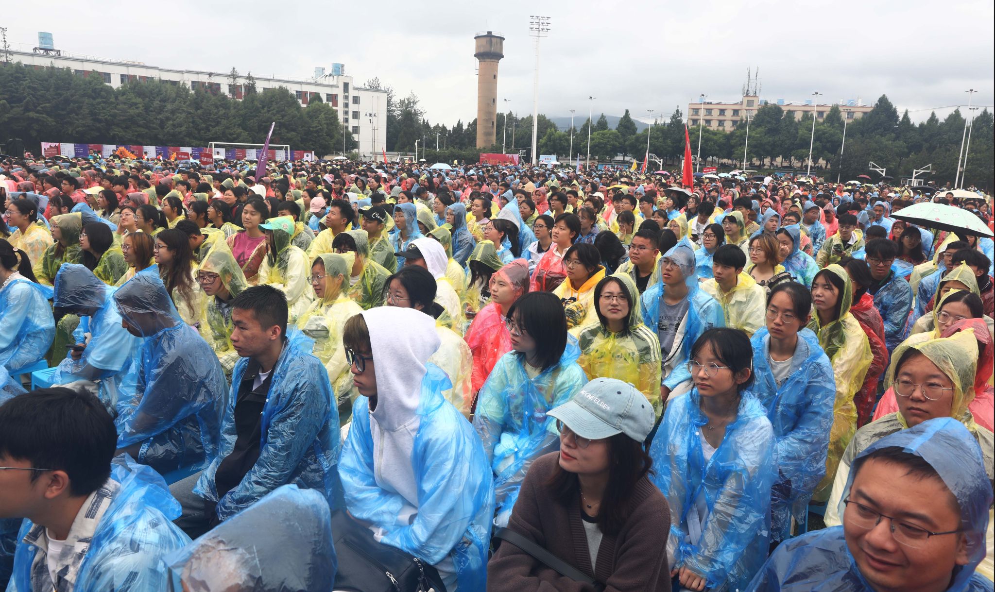 本站消息 九月流金,硕果盈枝,新学启幕,万象一新。9月9日,学校在校本部足球场以线上和线下相结合的方式隆重举行2024级新生开学典礼。校党委书记黎素梅主持开学典礼,学校领导班子成员出席,各学院、部门主要负责人和师生代表、校友代表,全体2024级新生参加开学典礼。普洱校区在分会场同步收看直播。
