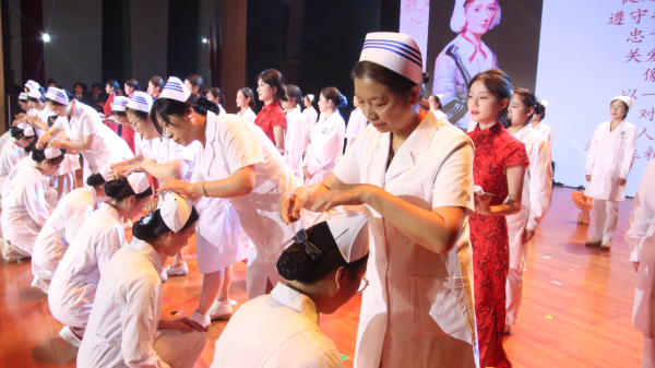 授帽仪式上,由临床护理导师和护理学院教师代表组成的授帽专家团,为2025届毕业生代表授戴纯洁神圣的燕尾帽,毕怀梅教授带领全场护理师生庄严宣誓,铿锵有力的誓言激发了同学们献身护理事业的热情。