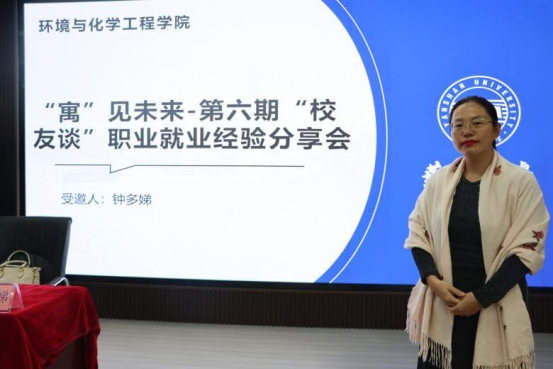 11月23日,环境与化学工程学院第六期“校友谈”职业经验分享会在里仁行政楼113室成功举办。本次活动特别邀请到燕山大学江西校友会秘书长、07届艺术设计专业钟多娣校友担任主讲嘉宾。会议由辅导员陈雪涛主持,学院师生代表参加。