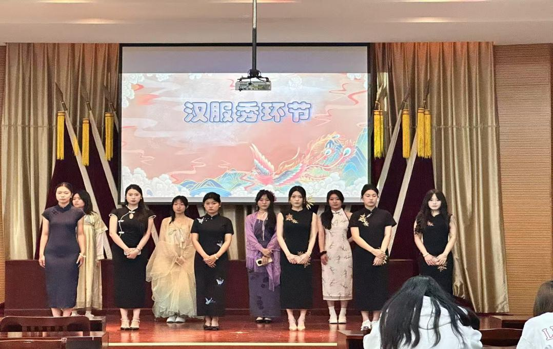 竞赛伊始,主持人张语轩讲述竞赛流程与内容,现场气氛紧张而热烈,选手们准备充分、信心满满。比赛内容涵盖诗词歌赋、传统节日、历史典故等多个领域,全面考查选手对传统文化的理解与掌握。必答题环节,选手们沉着冷静,对答如流;抢答题环节,大家眼疾手快,竞争激烈;风险题环节,选手们更是展现出深厚的知识储备和果敢的决策能力。中场休息的汉服秀环节更是将现场氛围推向高潮,由数名模特身着唐制襦裙、宋制褙子、明制马面裙等经典汉服,搭配精致发饰,缓步登场。整体氛围尽显汉服之美与传统文化韵味。