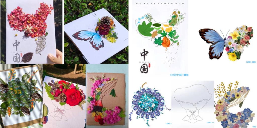 学生运用SolidWorks、Photoshop等专业软件设计图案,并将打印出的图纸裁剪后粘贴至回收纸板上。通过搜集落叶、树枝等自然素材,采用手绘与实物相结合的手法,细致记录校园植物的细节特征,使废旧纸壳焕变为记录季节变迁的立体艺术作品。