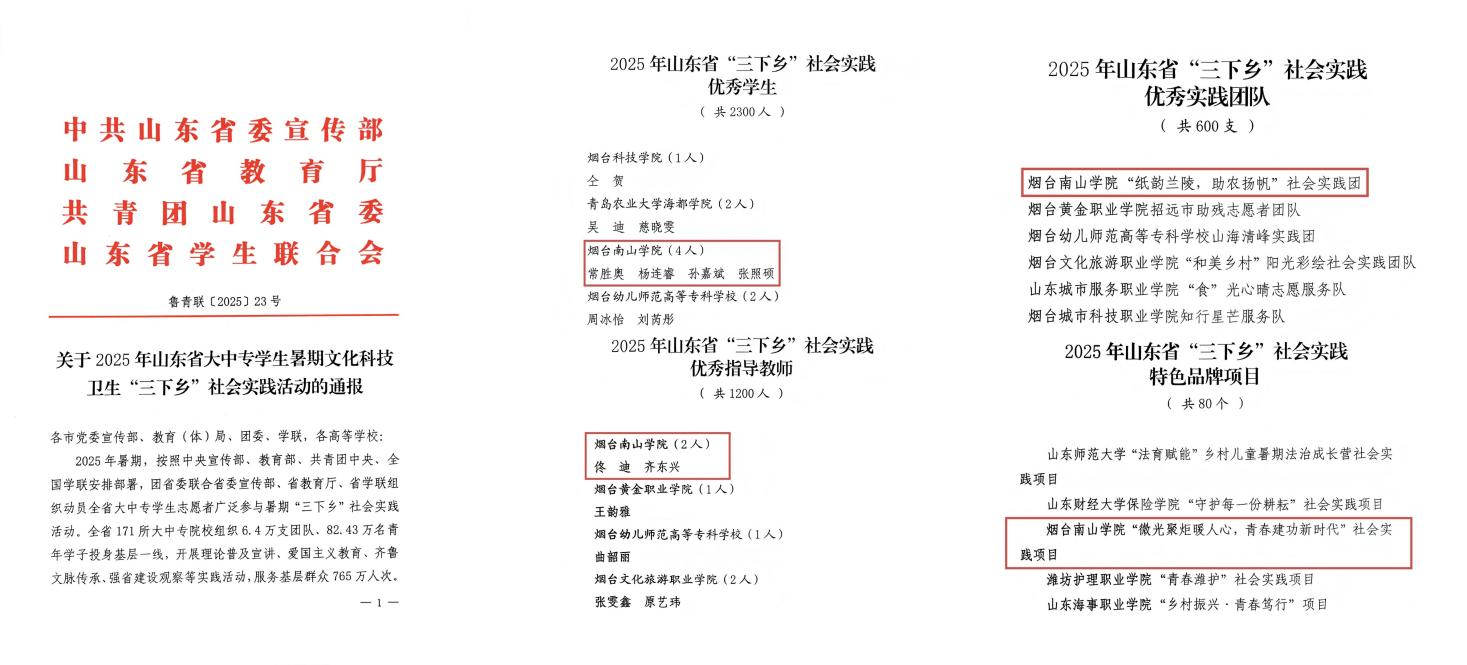烟台南山学院在2025年山东省暑期“三下乡”社会实践活动中获多项省级表彰