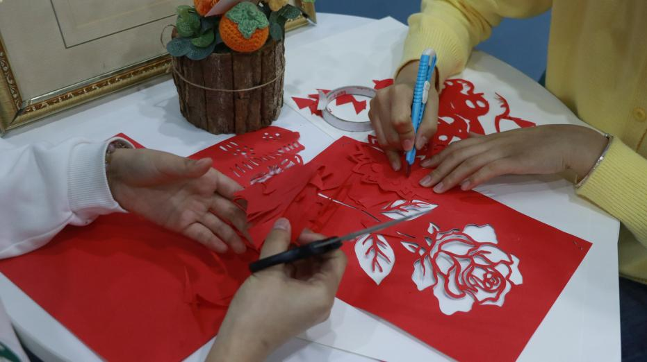 活动在“一站式”学生社区服务中心举行,现场设置了多个体验区域,涵盖了剪纸、手工制作等非遗项目。每个区域都有专业的非遗传承人进行现场指导,同学们可以亲自动手体验传统技艺,感受非遗文化的独特魅力。