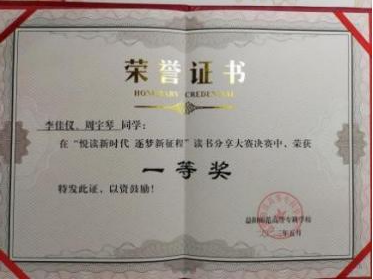 在校期间获得湖南省职业院校楚怡读书比赛三等奖,“党史进课堂”征文比赛一等奖,“悦读新时代,逐梦新征程”读书分享大赛一等奖,“小学教育活动设计与实施”赛项一等奖,“庆祝中华人民共和国成立75 周年”征文比赛一等奖,“青春向党,勇毅前行”演讲比赛三等奖,楚怡读书行动征文比赛三等奖等荣誉。