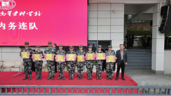 党委委员、副校长段学文宣布军训获奖连队、优秀内务连队、优秀学员、优秀指导员、优秀教官名单,校领导为获奖人员颁发奖状。