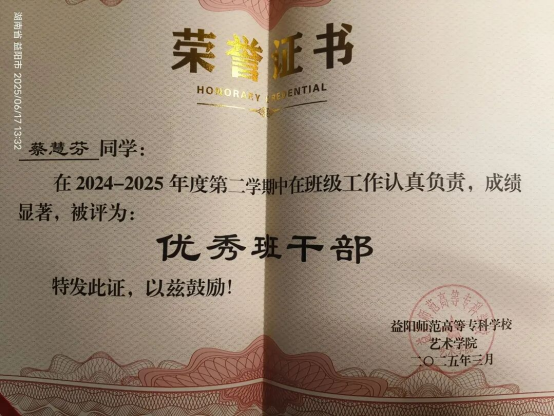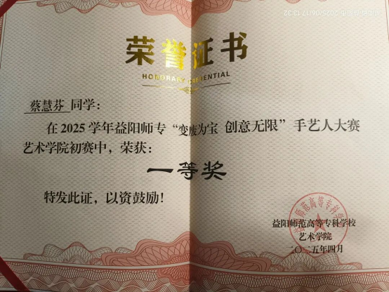 此外,她在“变废为宝 创意无限”活动、“新青年 新风尚”主题征文比赛、“雪落寒意重 万物尽冬藏”知识竞赛及“最美大学生”摄影比赛中均有所收获,并荣获“校园魅力摄影之星”“校园廉洁海报设计之星”称号。