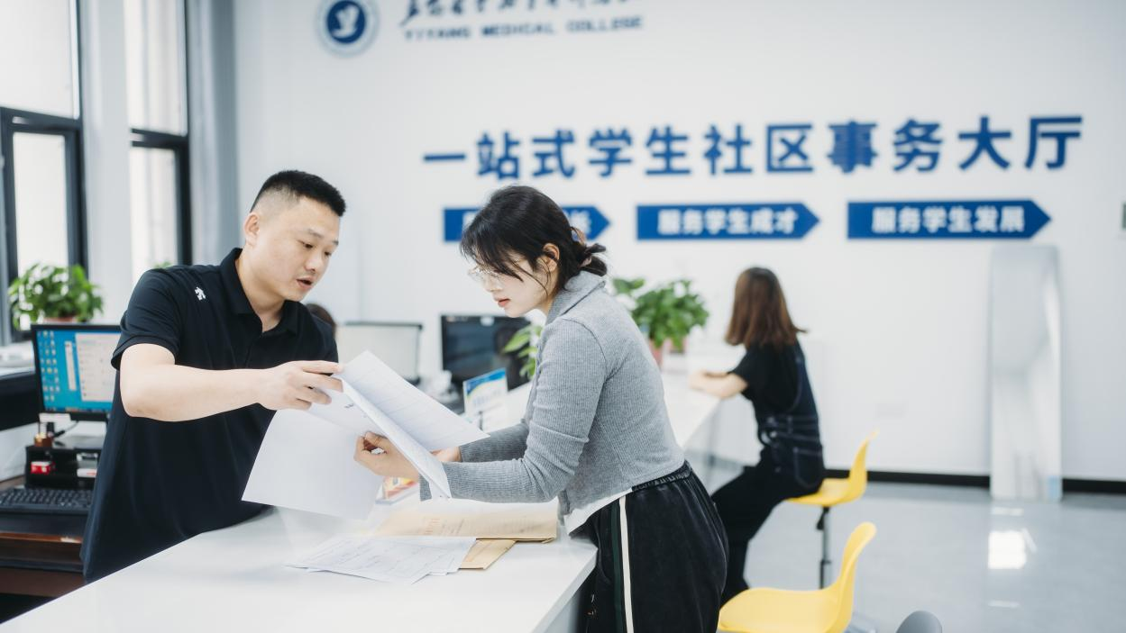 2024年11月,学校占地1585平方米的“一站式”学生社区正式启用。这个以“家”聚人、以“文”化人的新阵地,整合7个服务窗口、自助终端和线上平台,实现奖助学金申请、证件办理、请销假等事务“一站办结”。配套党员活动室、心理咨询室、生涯就业指导室等25个功能空间,融事务办理与成长发展于一体,实现服务学生零距离。