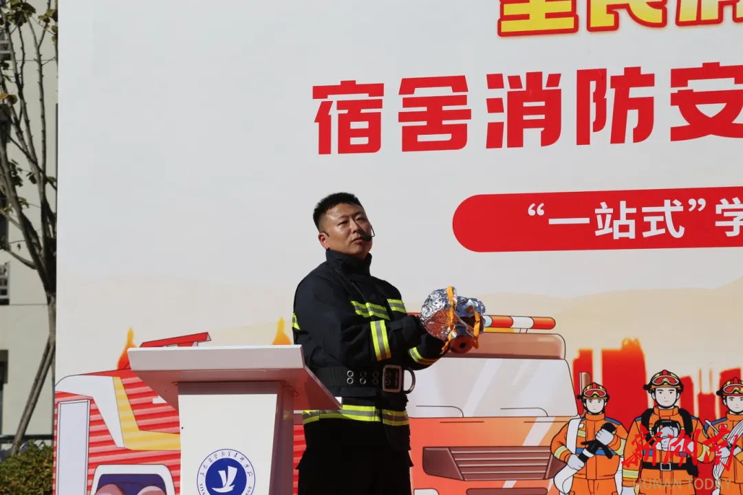 湖南日报·新湖南客户端11月27日讯(通讯员 柴玉玲)11月26日下午,益阳医学高等专科学校“一站式”学生社区第二届宿舍文化节之“全民消防,生命至上——宿舍消防安全总动员”,在10栋宿舍楼前坪启动。全校5000余名师生参加。