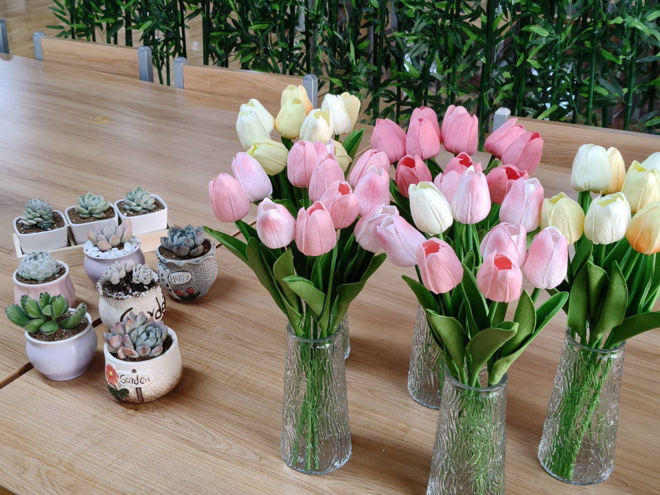 另一侧的插花区同样热闹非凡。邀请的花艺爱好者为参与的同学们讲解了插花艺术的基本原理与技巧,包括花材的选择原则、色彩的搭配艺术、造型的设计方法以及意境的营造等。随后,参与者开始动手创作自己的插花作品,经过一番精心雕琢,一盆盆色彩斑斓、风格各异的插花作品呈现在大家眼前,令人赏心悦目。
