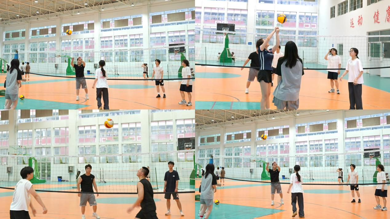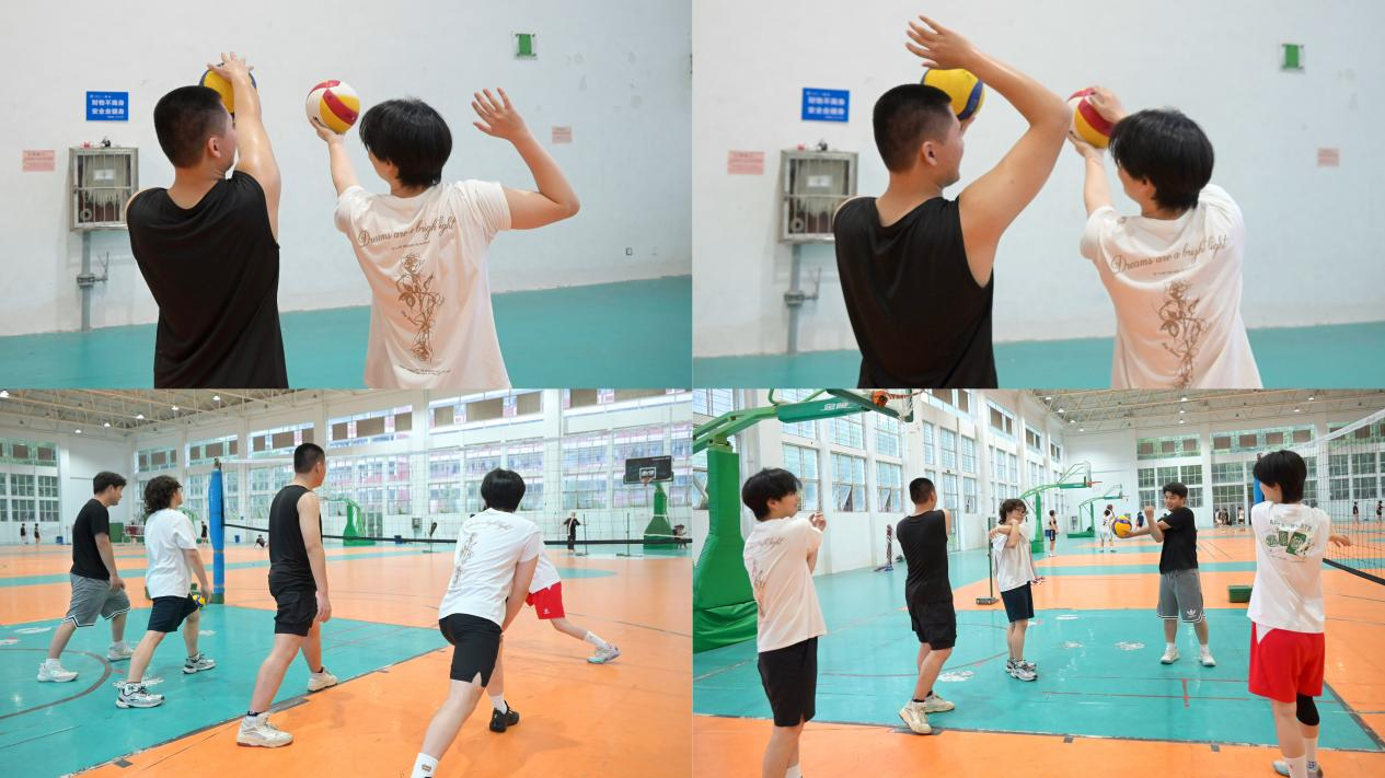 课程尾声组织了一场简短的友谊对抗赛,同学们分组组队,亲身体验比赛节奏与团队配合带来的成就与快乐。虽然是初学者,但大家配合默契、拼劲十足,每一次成功得分都伴随着欢呼与鼓励,场馆内洋溢着青春与团结的力量。“这是我第一次正式上排球课,感觉每一次接球都很有挑战,但也特别有趣,原来运动也可以这么有参与感和归属感。”参与学生蒋子涵兴奋地表示。
