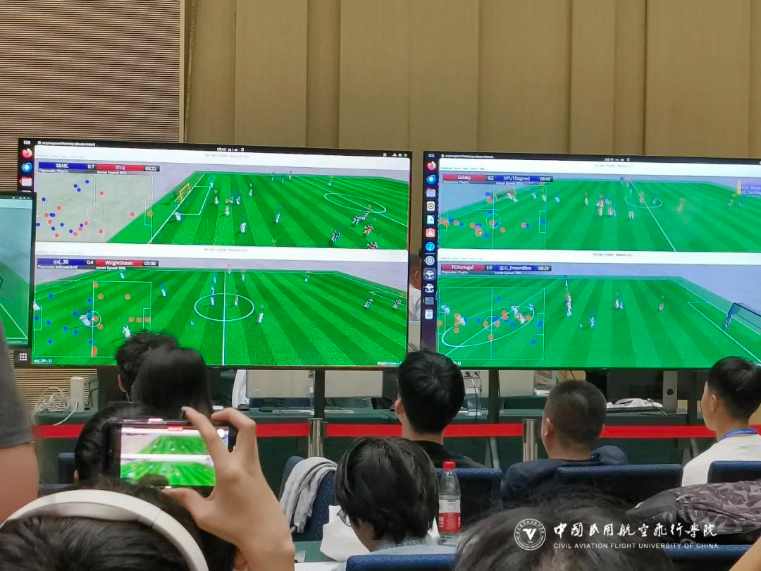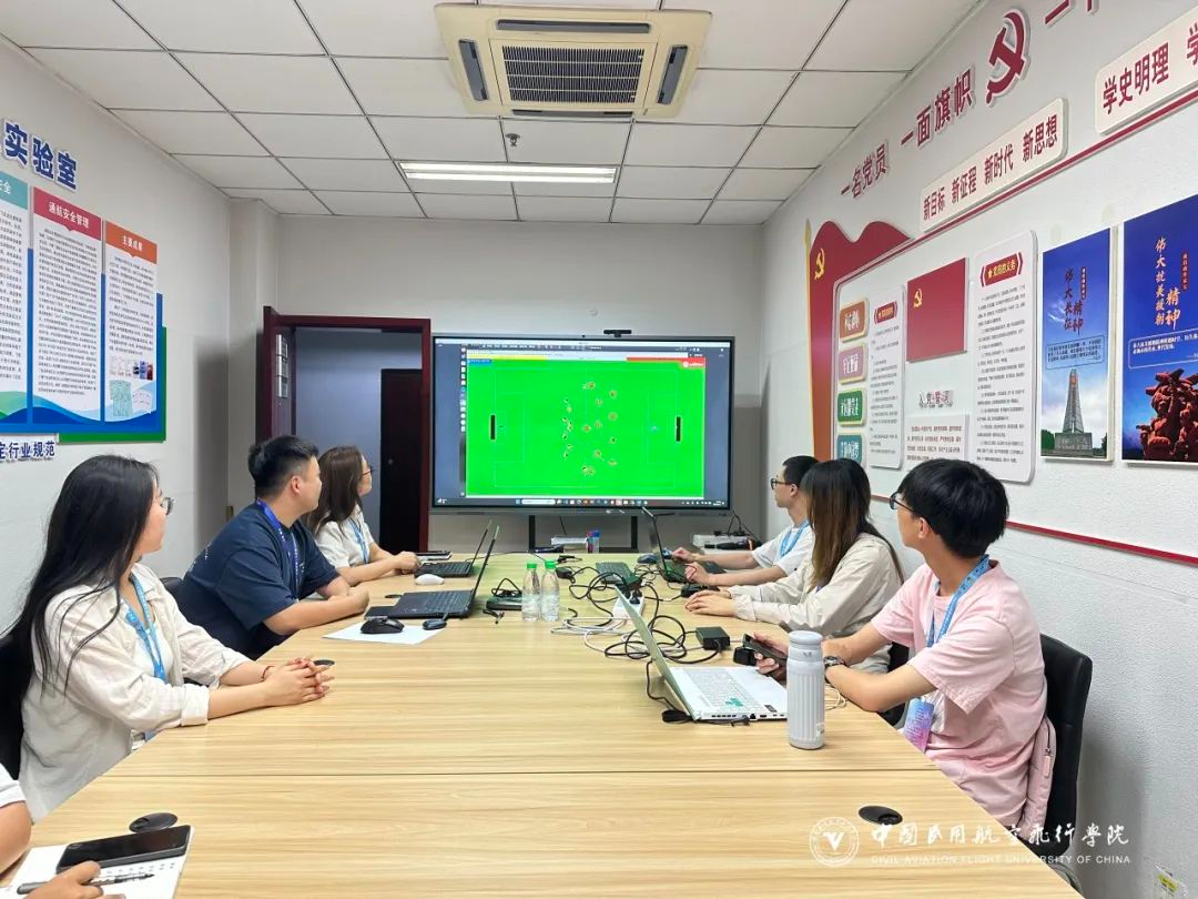 学院机器人足球队成员通过“实验室+专业+社团”的特色培养模式选拔产生。在学院智能星空科技社和科研基地学生创新创业中心,一群对机器人技术和机器人竞赛充满热情的学生,自发组织成立了这支队伍。该实践平台有效服务了学生技术研究、工程开发与创新实践的需求。团队继承了中飞院“传帮带”的优良传统,坚持以老带新、迭代创新,齐心协力研究并制定参赛策略,在国内外大赛中多次展露头角。