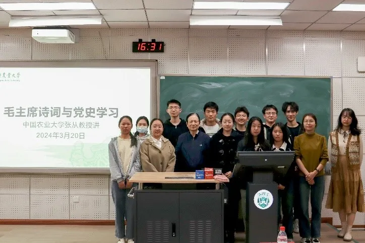 为响应习近平总书记关于党史学习的号召,推动青年学生学好党史、用好党史,从党的历史中汲取智慧和力量,落实党史学习教育常态化、长效化建设,3月至4月,资源与环境学院关工委共举办五期“资英助翔”暖亭行动,邀请学院关工委委员、环工系退休教授张从为青年学生党员讲授“毛主席诗词与党史学习”系列党课,带领学生在学党史、强党性的同时挖掘毛主席诗词中的艺术价值,提高文学素养。