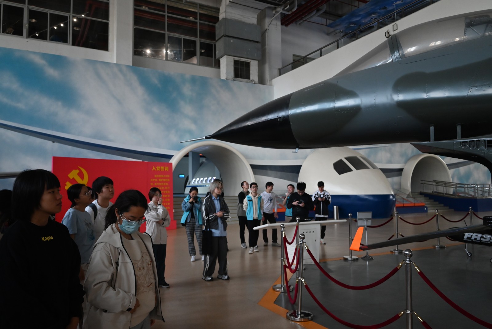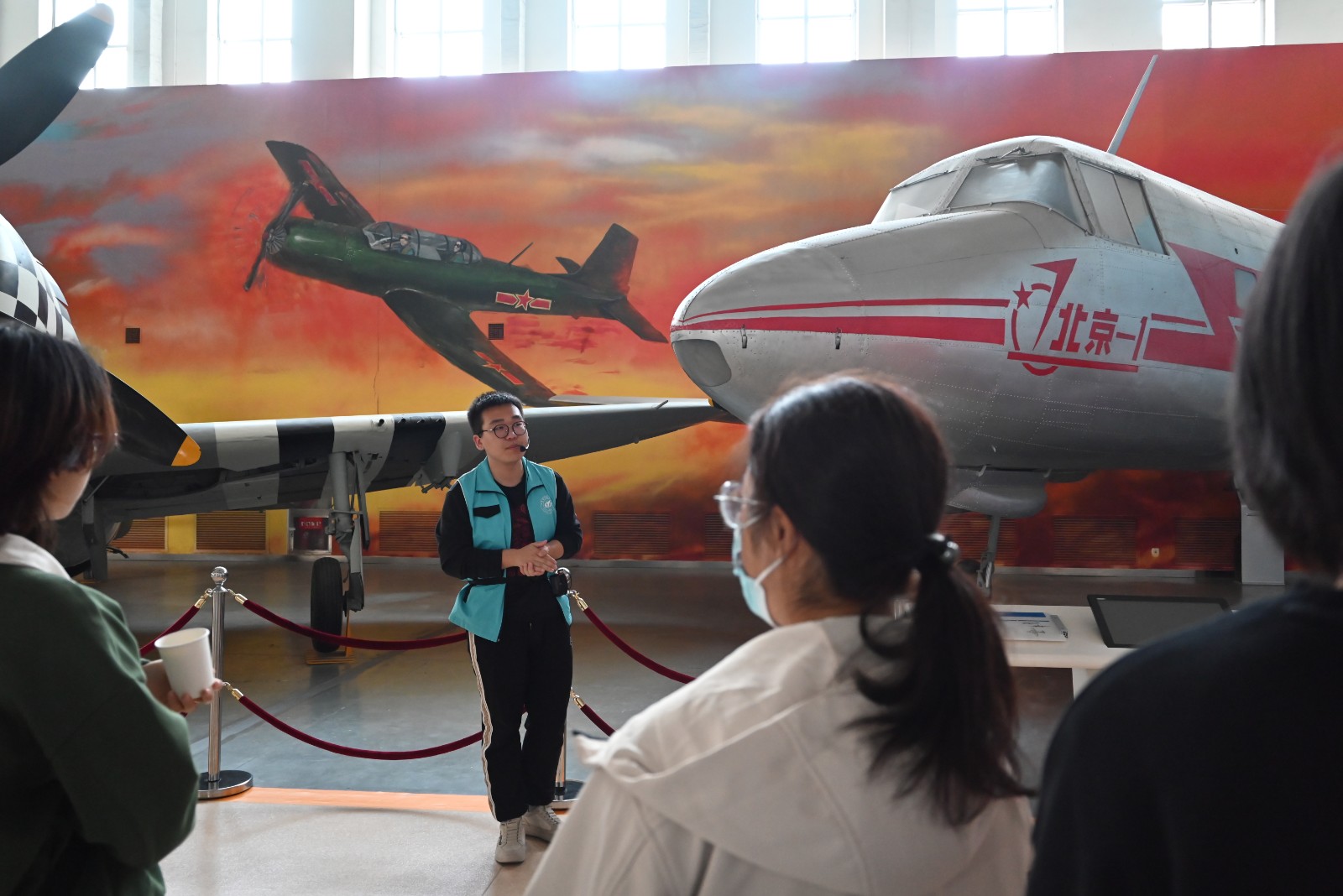 “这是全球唯二的P-61‘黑寡妇’重型战斗机,那是由北航师生亲手设计并制造的新中国第一架轻型旅客机‘北京一号’”北航志愿者叶展朋以我国航空航天事业的发展历程为线索,从起落架、发动机等飞机部件,到各种型号的火箭、卫星等航天重器,同学们触摸着中国航空工业从无到有的峥嵘历程,感慨万千。中国农大志愿者肖炜东驻足展区良久:“正是这一代代兽医人和航天人的坚持不懈、奋楫前行,才有了我们如今的美好生活”。