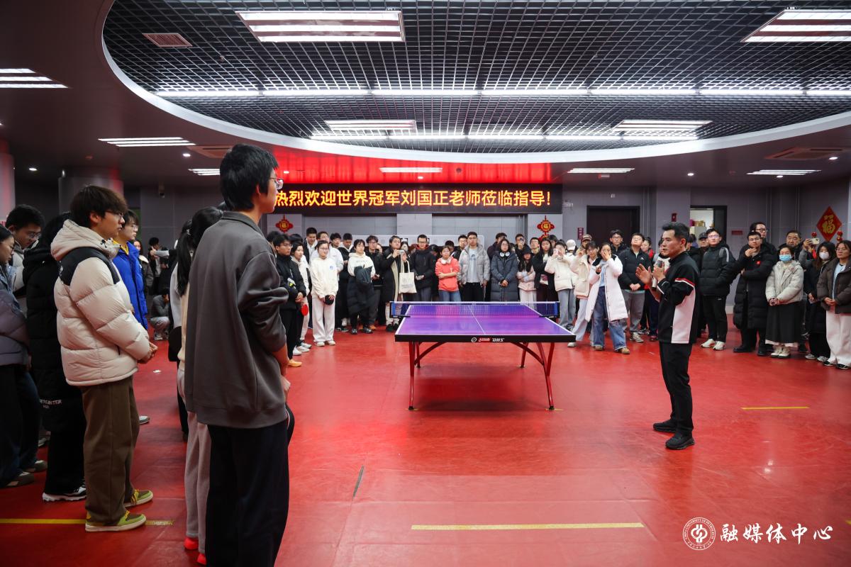 1月1日,总决赛在三教地下乒乓球室拉开帷幕,100余人参加比赛。1月8日,冠亚季军争夺赛在教职工活动之家乒乓球场开赛,中国前职业乒乓球运动员、清华大学体育部副教授刘国正亲临现场。学生工作部(处)、教育学院相关工作负责人、师生代表及晋级队伍运动员100余人参加活动。刘国正结合自己的乒乓运动生涯,向现场同学们分享了“热爱、拼搏、集体”三个关键词,鼓励同学们要在集体中凝聚力量、彼此支持,努力成为未来能源事业的优秀接力者。刘国正还为晋级班级队伍进行专业的技术指导。