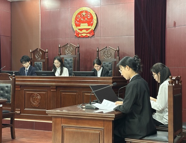 模拟场景辨真伪,思辨交锋探法理。活动伊始,学生代表通过模拟听证场景,生动还原“匠心坊”商标抢注案例——从企业初创期商标抢注纠纷爆发,到听证会上各方就“在先使用”、“恶意抢注”等核心争议点展开辩论。扮演者再现了商标司法实践中的焦点问题,引发了在场学生对“商标权取得规则”的深入思考。
