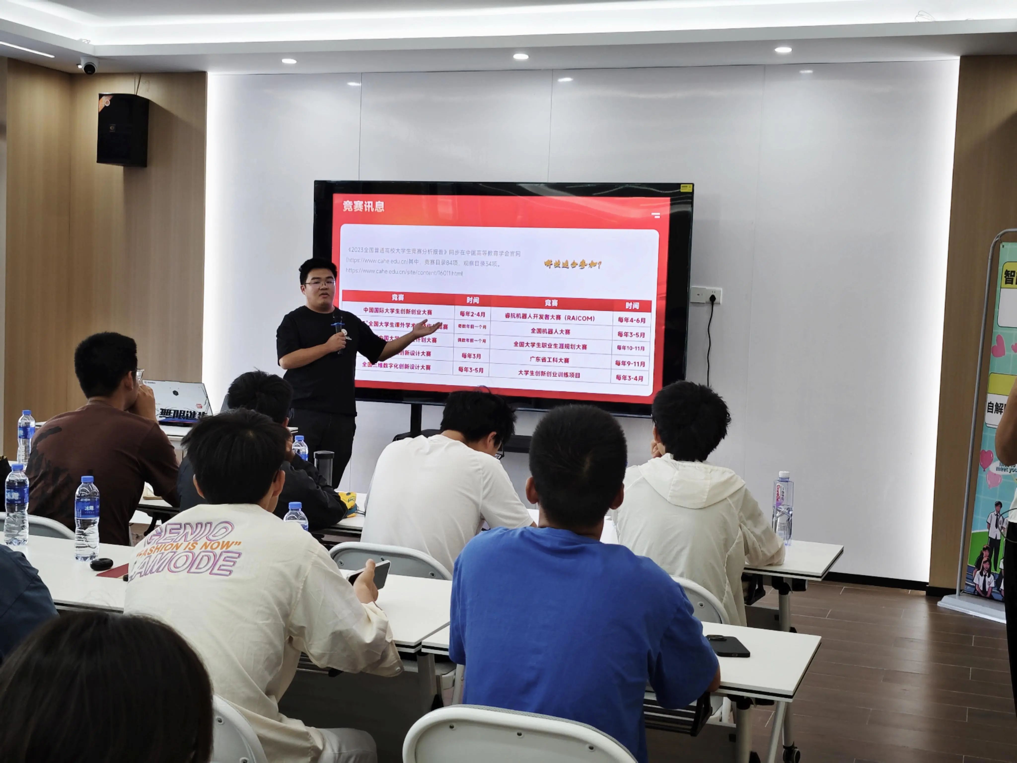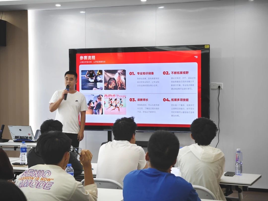 智航学院十佳大学生、智航学院团总支书记、2022级机械专业6班班长杨逸学长为大家讲解了:智航学子都有那些竞赛可以参加、都是什么时间报名、不同的竞赛又有哪些不一样、这些竞赛获奖的项目都是什么样子,让同学们对于学科竞赛有了初步的认识。