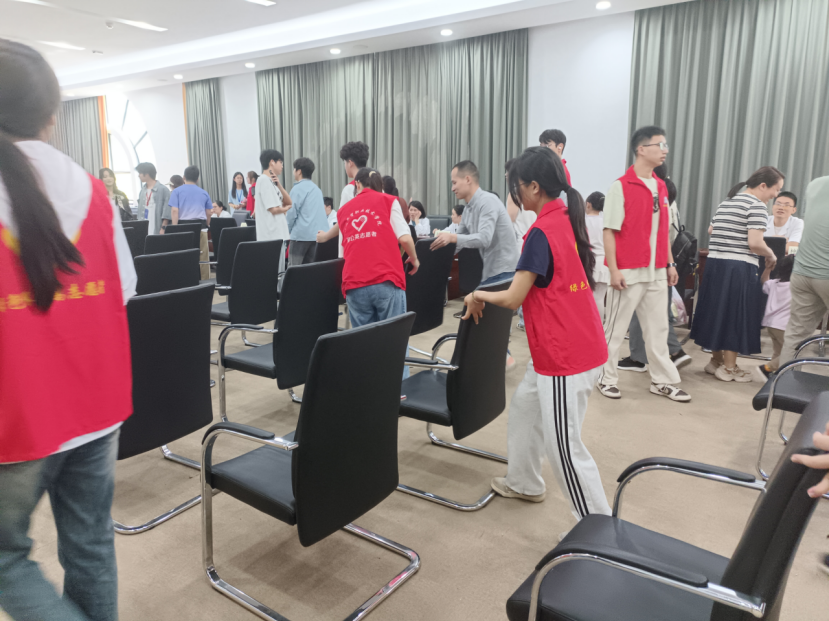 活动开始前,绿色啄木鸟志愿队的志愿者们通力合作,整理现场桌椅,为医科大的医生们义诊做好前期保障工作。