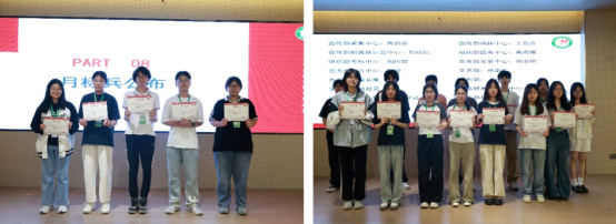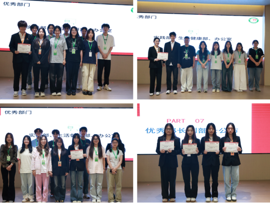 在大会最后,还公布了五月的各项荣誉。实践部、生活健康部、办公室获本月优秀部门称号;应智冰、蒋妍、夏欣慧、邓莹莹获本月优秀部长或副部长称号。这些荣誉不仅是对他们过去工作的高度认可,更激励着全体成员向榜样学习,不断提升自我、追求卓越。