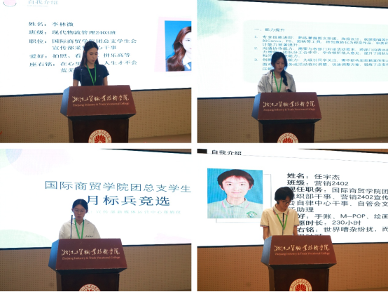 随后,大会进入精彩的月标兵竞选环节。参与竞选的同学们精神饱满、自信登台,通过生动的演讲,分享了自己在团学工作中的成长故事、实践收获以及对未来工作的规划展望。