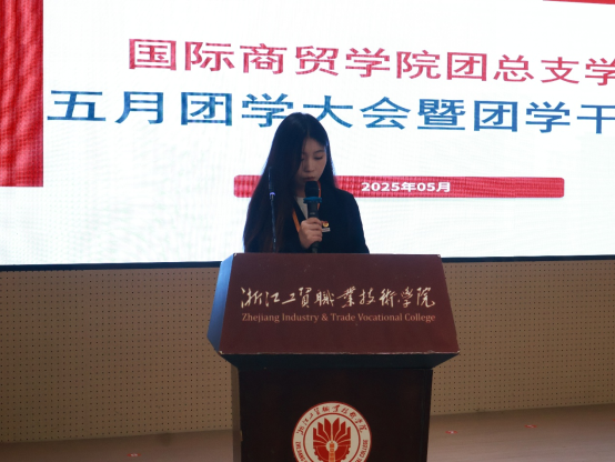 为深入学习贯彻习近平总书记五四重要回信精神,引导团学干部以“志存高远、脚踏实地”“厚植情怀、挺膺担当”“坚定信念、奋斗奉献”的青春姿态投身工作,国际商贸学院团总支学生会于5月26日晚在一号楼阶梯教室召开五月团学大会暨团学干部培训。会议围绕精神学习、工作复盘、榜样激励及未来规划展开,旨在以回信精神为指引,凝聚青年力量、激发奋斗动能,推动团学工作再上新台阶。会议由学生会主席吴晶晶主持,团总支学生会全体成员参加。