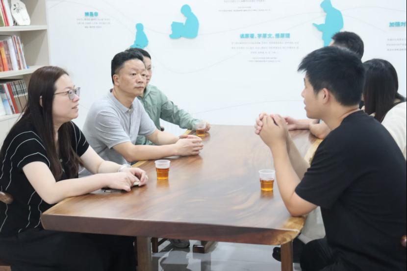 走访中,王书记一行与洞头鱼灯制作技艺非遗传承人郑根霖大师亲切交流,高度赞赏其守护地方文化根脉的贡献,勉励队员珍惜机会、深挖洞头非遗魅力,当好传统文化的记录者、传播者和创新者。同时,叮嘱师生高温天做好防暑与安全保障,鼓励大家扎根基层、用心完成任务。