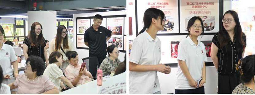 7月11日上午,李书记一行专程到瓯江红党建人才综合体,走访周小倩老师带领的“AI暖银龄”暑期社会实践队。步入教学现场,实践队员专注授课、银龄学员积极学习的温馨氛围吸引了他们。观察教学后,李书记充分肯定了队员的教学态度。课间,她亲切询问老年学员的学习感受,得到了大家的积极反馈。此次慰问为队员带来鼓励,也彰显了“AI暖银龄”项目弥合“数字鸿沟”的价值,肯定了青年学子服务社会、促进终身学习的实践成果。