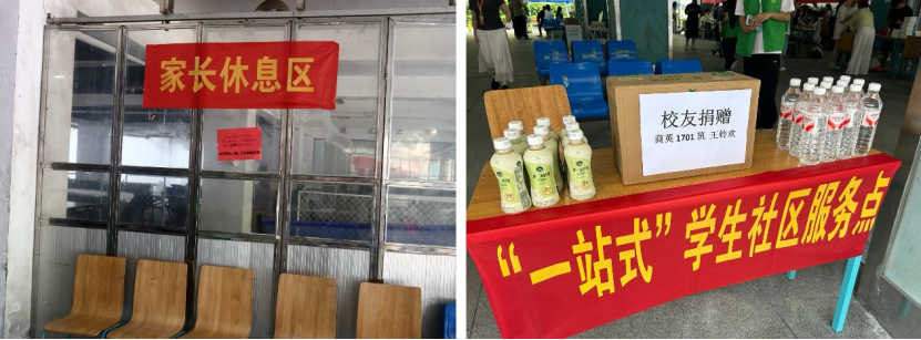 报到点旁特设的家长休息区暖意融融,这里不仅提供座椅供家长歇脚,还贴心准备了学院特别定制的扇子,让家长深刻感受到学院服务的妥帖细致。此外,优秀校友亦反哺母校,捐赠饮用水与饮料助力迎新,以行动传递爱校情怀,不仅为顶着烈日忙碌的迎新工作人员、志愿者们缓解了酷暑,也为远道而来、带着行李奔波的新生及家长送上了一份清凉。