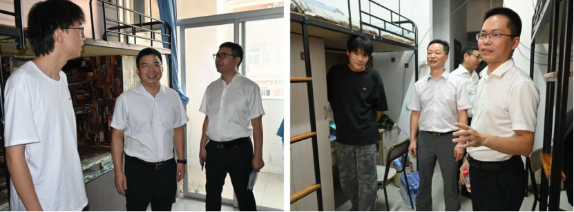随后,他们先后在国际商贸学院党总支书记王耀贵、副书记李侠的陪同下前往学生寝室开展走访与慰问。每一个细微的举动,每一句贴心的叮嘱,不仅让同学们深切感受到学校对其生活细节的关怀,更承载着学校对大家的殷切期望。在与新生的交流过程中,他们饱含着对同学们未来学业、日常生活及个人成长的鼓励与支持,让温暖融洽的氛围遍布校园的每个角落。