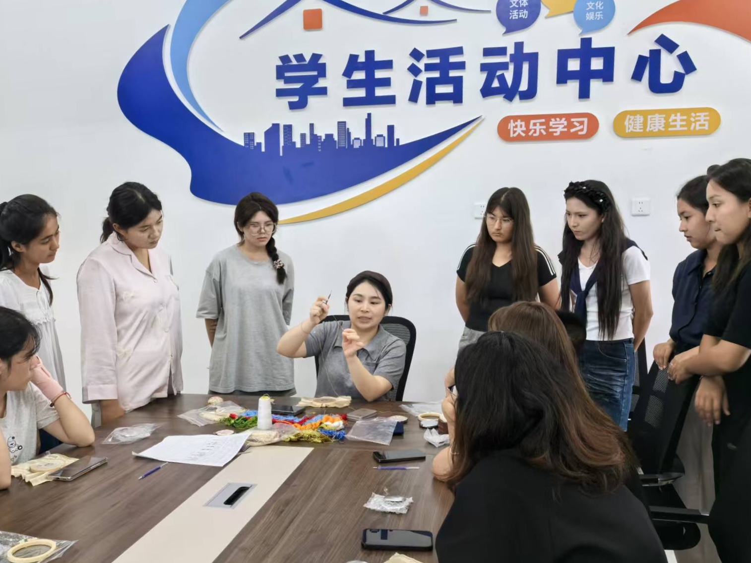 学院充分发挥“一站式”学生社区的空间集聚优势和教育功能,将优秀传统文化传承有机融入学生日常生活。在瓯绣非遗体验活动中,特邀高级工艺美术师、温州市工艺美术大师余琼现场授课,采用“理论讲解+示范教学+实践操作”三段式教学模式,引导新疆籍学子在亲身参与中深入领略传统技艺的精髓。活动现场学习氛围浓厚,师生互动热烈,形成了教学相长的良好局面,既培养了学生的耐心与专注力,也在社区内营造了非遗文化传承的浓厚氛围。