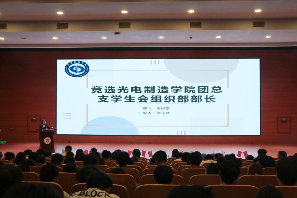 光电制造学院第六届学生会部长团候选人依次上台进行演讲竞选。