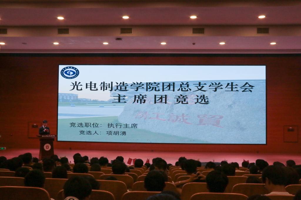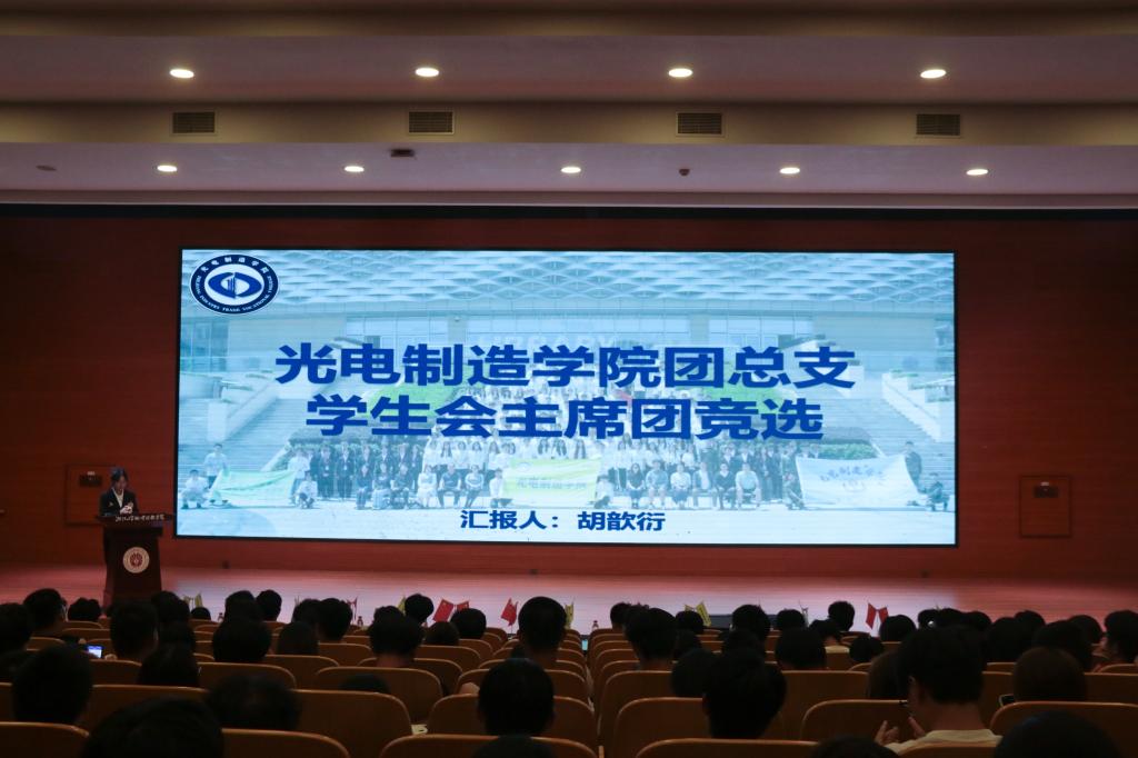 光电制造学院第六届六位学生委员会委员候选人上台进行演讲竞选。