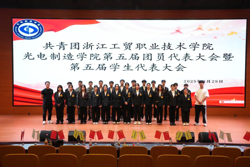 在团歌《光荣啊,中国共青团》的音乐声中,光电制造学院第五届团员代表大会暨学生代表大会顺利闭幕。