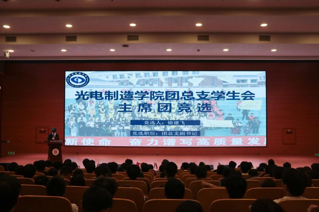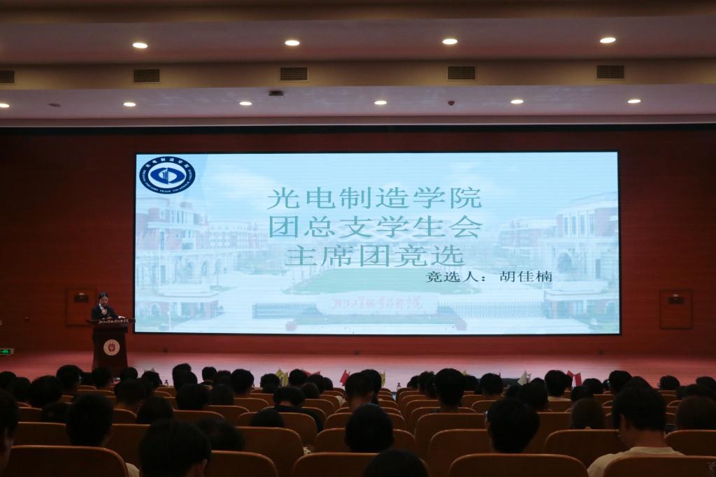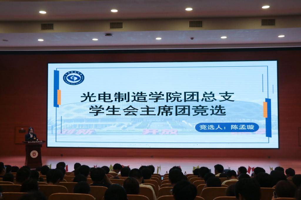 光电制造学院第六届两位团员代表委员候选人上台进行演讲竞选。