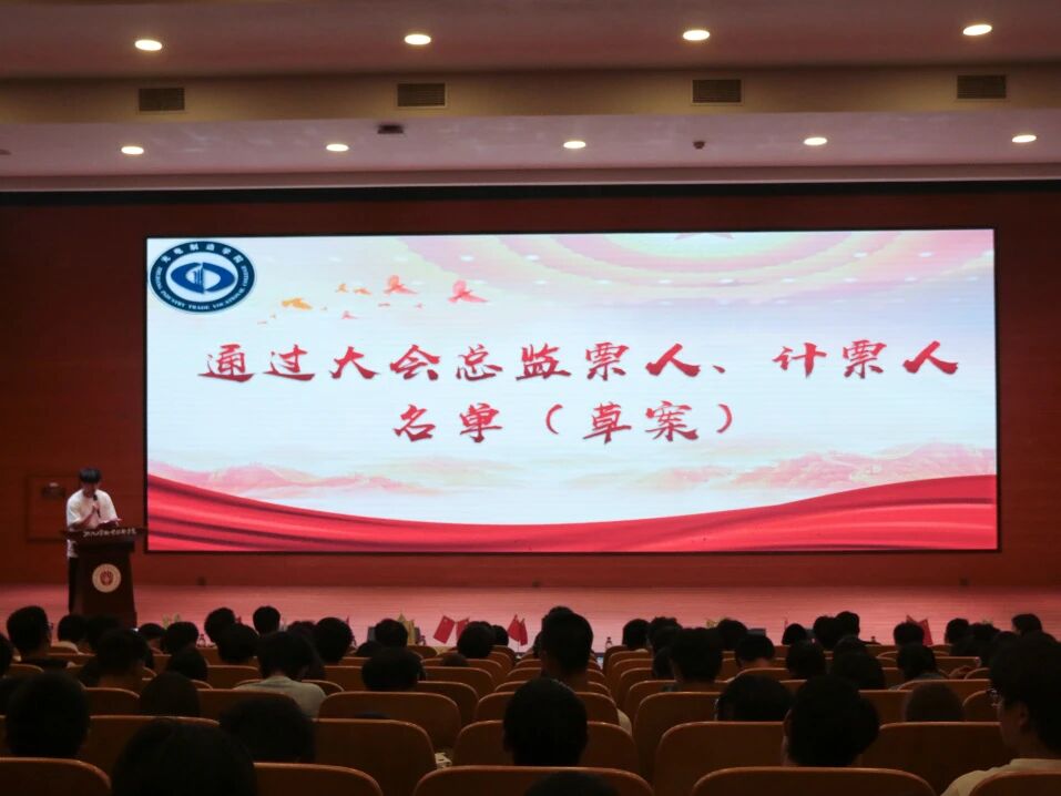 光电制造学院团总支书记薛玉杰老师宣读大会总监票人、计票人名单(草案)。