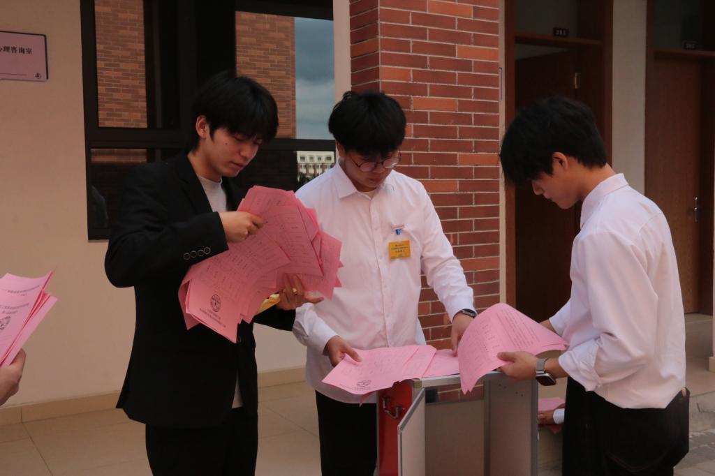 各位老师,学生代表深思熟虑后填写选票并有序投出。