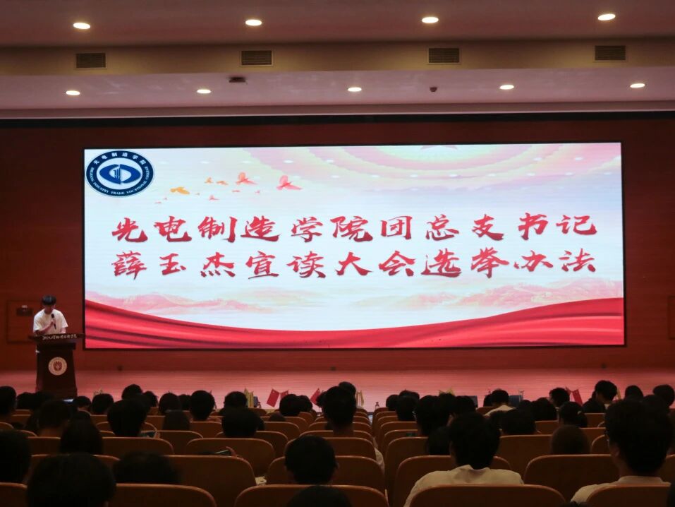 为进一步加强光电制造学院团学组织建设,优化学生干部队伍,提升服务青年学生成长成才的能力与水平,推动学生工作持续创新发展,光电制造学院于9月29日下午在敬听楼隆重召开第五届团员代表大会暨学生代表大会。