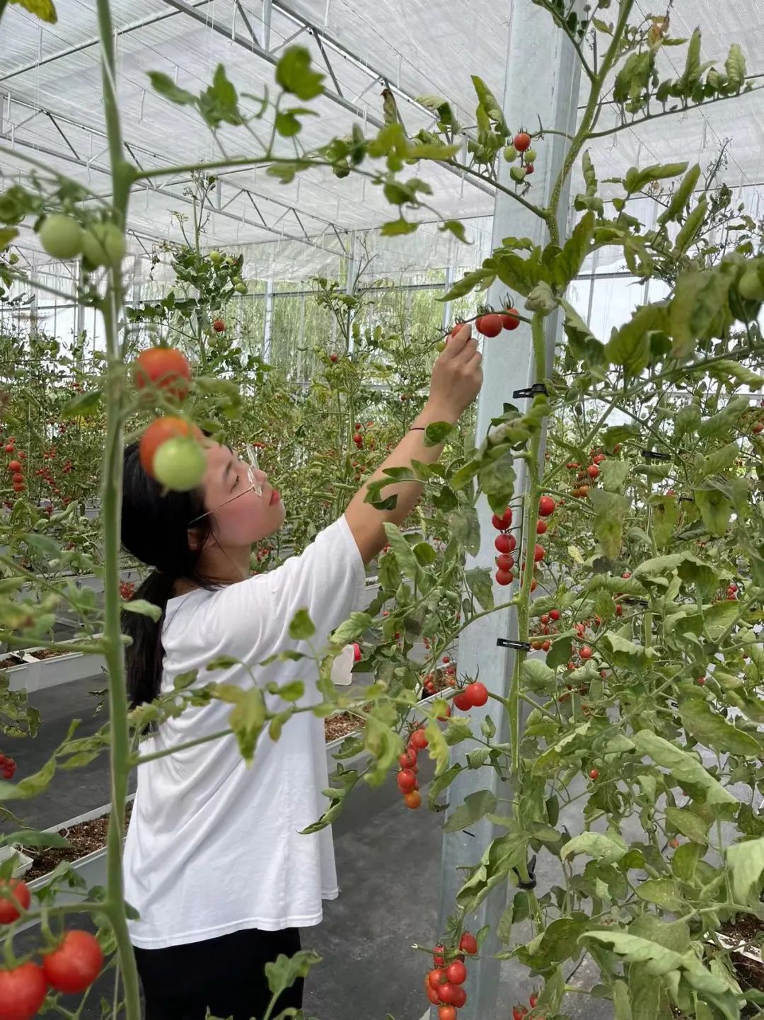 我们来到了杭州萧山舒兰农场,在这里智能玻璃温室真的是让我叹为观止!温室内有绿了的芭蕉、发了红的番茄,还有各类的多肉,和一些我叫不上名字的果蔬。其中一大片的小番茄极其壮观,按种类划分栽种在不同的区域,红色的小番茄像红灯笼一样挂在那里,让我们看到就已经垂涎欲滴了。