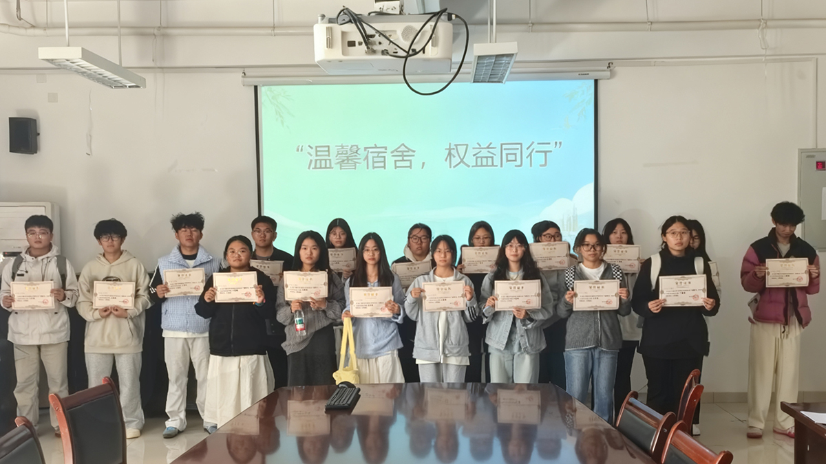 最终,活动共评选出18号楼南212等9间宿舍为一等奖、11号楼北208等8间宿舍为二等奖、15号楼北606等15间宿舍获三等奖,并于10月22日在26号楼南401举行了颁奖仪式,为获奖宿舍颁发荣誉证书。