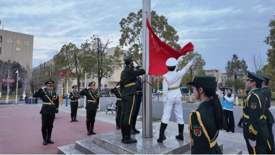 晨曦微露洒校园,寒意渐消暖意生。全体学生身着整齐服装、精神饱满、身姿挺拔,在指定区域列队肃立,目光中满是对国旗的崇敬与对宪法的敬畏。随着保卫处工作人员的有序组织,升旗仪式正式拉开帷幕。在雄壮激昂的《义勇军进行曲》中,鲜艳的五星红旗冉冉升起,全体学生神情肃穆、目光坚定,向国旗行注目礼,嘹亮歌声与金色晨光交相辉映,将对祖国的无限热爱与赤诚敬意抒发得淋漓尽致。整个升旗过程规范有序、庄重肃穆,充分展现了我校学子昂扬向上的精神风貌与深厚真挚的爱国情怀。