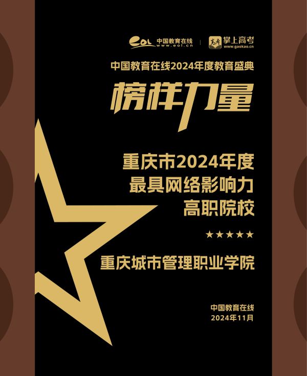 此奖项不仅是对重庆城市管理职业学院招生宣传工作的高度肯定,更彰显了重庆城市管理职业学院在教育数字传播浪潮中,引领高校网络形象塑造、信息传播新范式的卓越能力与突出贡献。 未来,重庆城市管理职业学院将以此为契机,持续深化教育宣传创新改革,不断提升学校品牌形象与网络传播效能,让优质教育资源借助网络力量辐射更广,为莘莘学子照亮求知逐梦之路,也为教育事业高质量发展持续贡献独特的样本参考。
