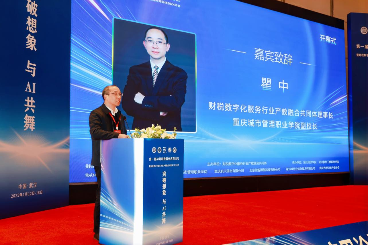 1月12-13日,第一届AI财税数智化应用论坛暨财税数字化服务行业产教融合共同体2024年会在武汉举行。我校副校长瞿中、数智财经学院副院长黄菊英及财务管理专业带头人杨秀梅教授受邀参加会议。本次会议在中国高等教育学会高等财经教育分会指导下,由财税数字化服务行业产教融合共同体主办,来自全国高校及财税数字化企业代表共160余名专家学者共同参与。