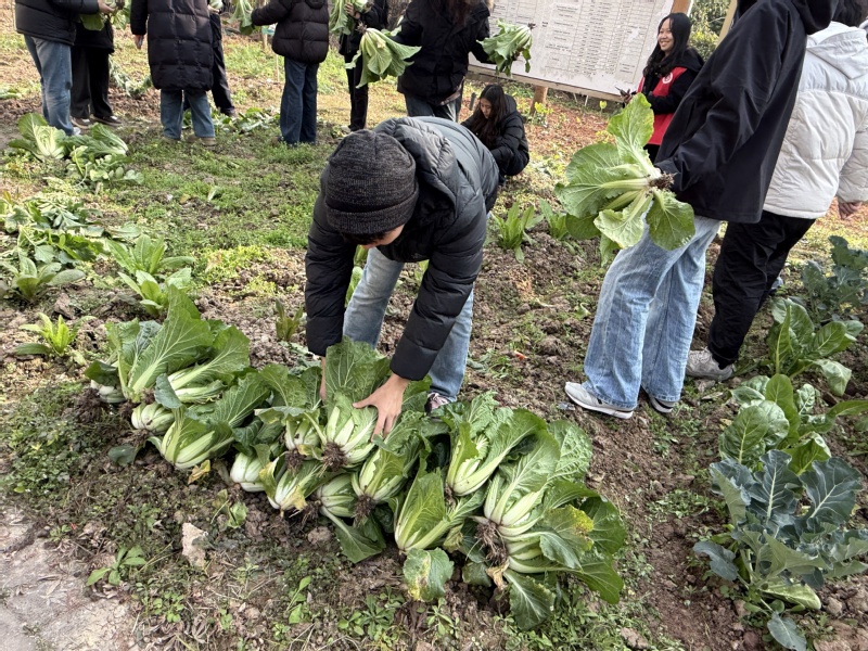 进入采收阶段,师生有序进入果实累累的菜园。指导老师现场讲解了白菜、白萝卜等当季蔬菜的最佳采收时机、技巧与储存方法。师生俯身田间,细致采收成熟蔬菜并进行分拣整理,在协作中体验收获喜悦,感受团队温情。
