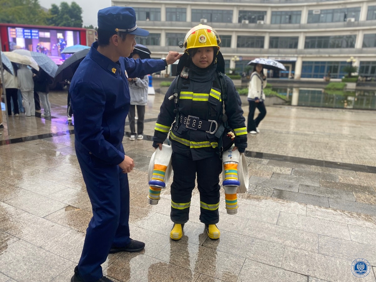 在互动体验环节,南岸区消防救援局、黄桷垭消防救援站官兵进行现场宣讲,同学们近距离接触了消防战斗车,亲身体验了消防服、氧气面罩、破拆工具等消防实战装备,深刻体会到消防员日常训练和战斗的艰辛,无形中增强了预防火灾的意识。