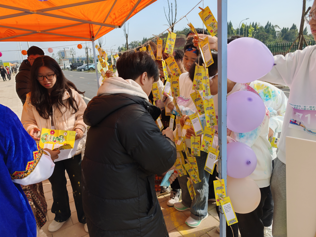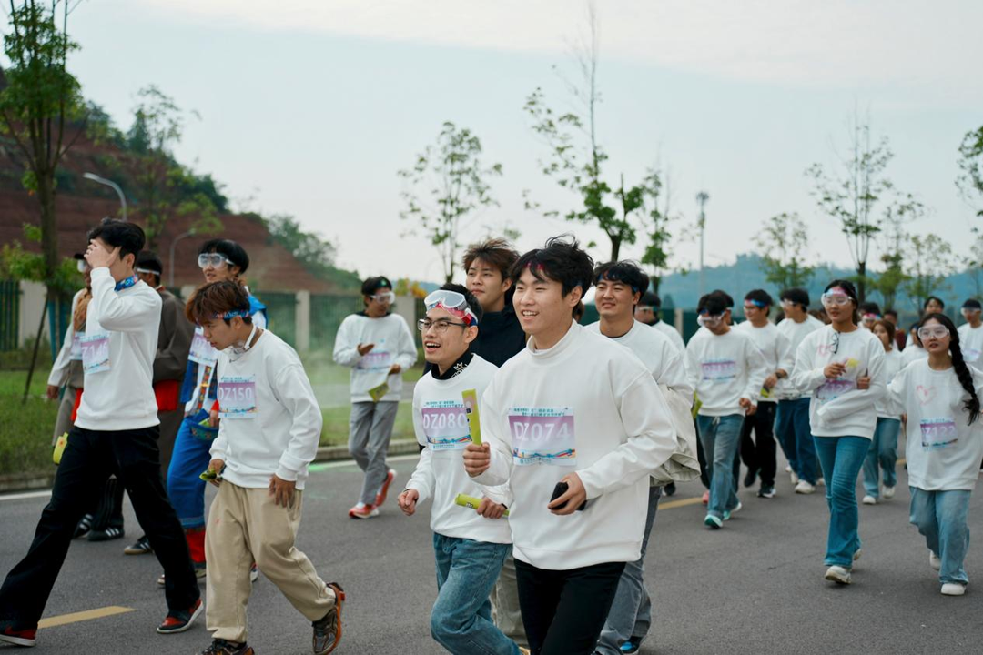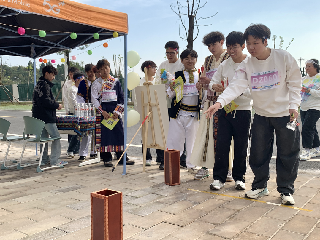 来自各学院的数百名学子身着白色卫衣和民族服饰,手持彩色玉米粉,以最热烈的姿态奔赴这场 “无排名、无竞争、重参与” 的青春盛宴,用奔跑与欢笑书写属于大学生的活力篇章。沿途设置的6个创意游戏摊位成为了欢乐的焦点,它们不仅是色彩的加油站,更是智慧与协作的挑战场。