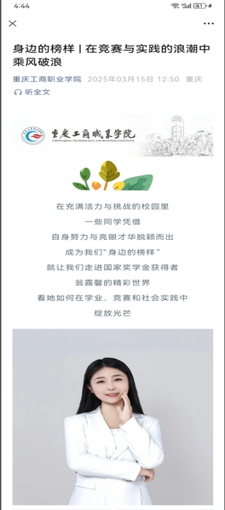 构建全媒体宣传矩阵,讲好榜样励志故事。通过“两微一网多平台”宣传模式,全年积极推送国奖学子成长故事。学校官方微信公众号开设“身边的榜样”专栏,采用“文字+图片+短视频”等形式分享国奖学子成长经历;校团委抖音平台推出“何以青春——榜样青年说”系列vlog,交流国奖学子等优秀青年的所感所悟;学工部网站设立“国奖学子风采展”栏目,集中展示国奖获得者风采。通过多渠道广泛宣传,传递国奖学子的奋斗精神和励志故事,以身边事启迪身边人。