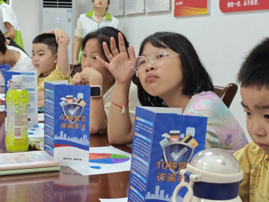 “防诈大闯关,筑牢安全防线” 环节以 “情景剧场” 拉开序幕。孩子们化身 “小侦探”,在还原的诈骗场景中识别骗术。宣讲团结合真实案例,深入浅出地拆解常见诈骗手段,并带领孩子们学习《反电信网络诈骗法》。活动中还分发了反诈宣传手册,组织 “学法知法守法” 手抄报创作,让孩子们在动手实践中增强防诈意识和法律意识。