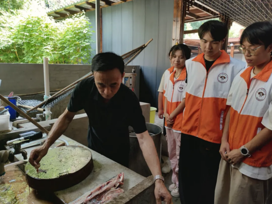 实践团成员化身非物质文化遗产的数智守护者。在厨房内,同学们认真聆听重庆市级非物质文化遗产太安鱼技艺传承人郑长春的实操讲解,品味独特的舌尖味道;在双江古镇,同学们分组行动,分别对双江千层麻花非遗传承人杨梨、双江莲萧第四代非遗传承人陈敏、潼南凉粉非遗传承人陈刚进行采访。从非遗结缘到保护,从工匠技艺到传承发展,从亲身体验到协助售卖,实践团成员们积极投身于非遗传承与文化传承之路。