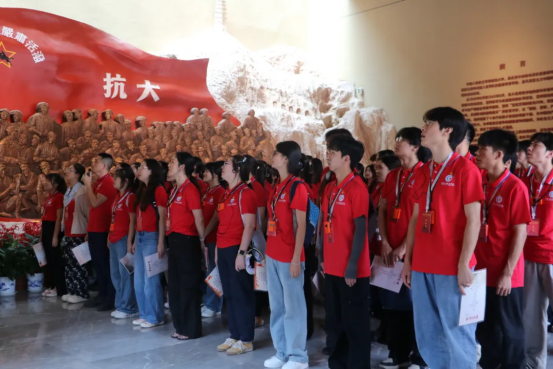 7月15日上午,师生们来到抗日军政大学纪念馆,馆内丰富的史料、珍贵的影像,生动再现了抗大“坚定正确的政治方向,艰苦朴素的工作作风,灵活机动的战略战术” 的校训精神。在纪念馆内,师生们唱响了抗大校歌,铿锵有力的歌声生动展现了抗大“团结、紧张、严肃、活泼”的校风。