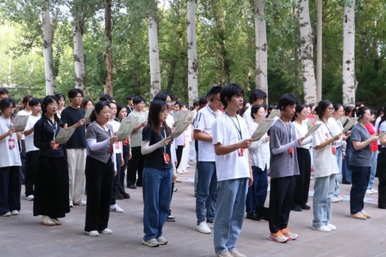 7月15日下午,师生们来到杨家岭、枣园革命旧址参观学习,并开展专题学习活动。在杨家岭革命旧址,师生们驻足于中央大礼堂、毛泽东旧居等场所,凝视着斑驳的桌椅与窑洞内的陈设,深切体会老一辈革命家在简陋环境中探索真理的执着。在枣园,旧址中的一砖一瓦、一物一景,都承载着鲜活的历史记忆,将延安精神变得具体可感、直抵人心。《延安窑洞有马列主义》专题学习让学员们深刻领会了延安时期理论联系实际的优良学风。在张思德广场,学员们集体诵读《为人民服务》,铿锵有力的誓言回荡在广场上空,让“全心全意为人民服务”的宗旨深植于心。